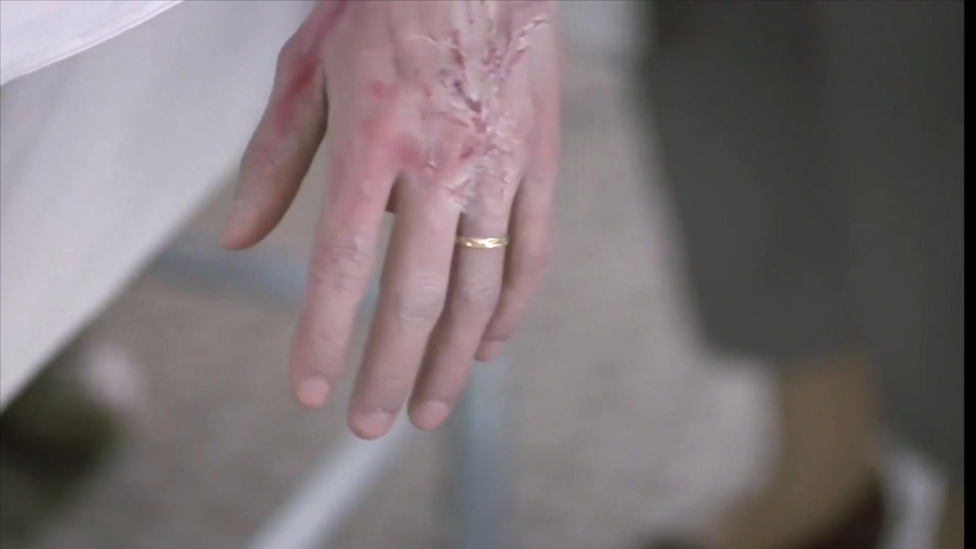 当女人推着丈夫尸体时,龙所长发现尸体的手上戴着一枚和案发现场一样的戒指。