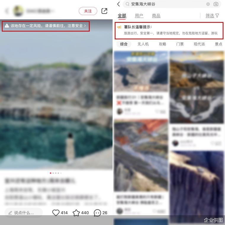 去年 5 月起,小红书启动了旅行垂类的处置专项,包括对存在安全隐患的野生景点内容进行常态化排查和风险提示;今年初开始,小红书进一步加大了对 " 风险地点 " 的多举措治理,通过分析笔记特征制定策略,结合巡检机制,更准确地发现潜在风险。小红书相关负责人表示:" 对风险地点的排查过程中,实际存在甄别难度大、数量难以穷举等情况,因此,也希望联合用户力量,作为挖掘风险的重要补充手段。"