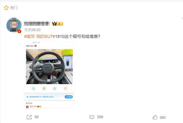 值得注意的是,车上方向盘下方的数字 "1810" 引起了网友的注意。