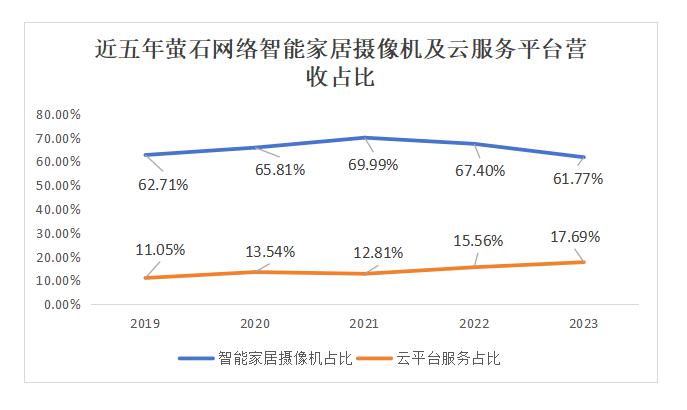 萤石网络作为智能家具企业,其对智能摄像机业务的重度依赖尤为显著,五年间该类产品销售收入占比始终超六成,加之云平台服务贡献的一成多收益,余下智能家居产品的营收贡献微乎其微。