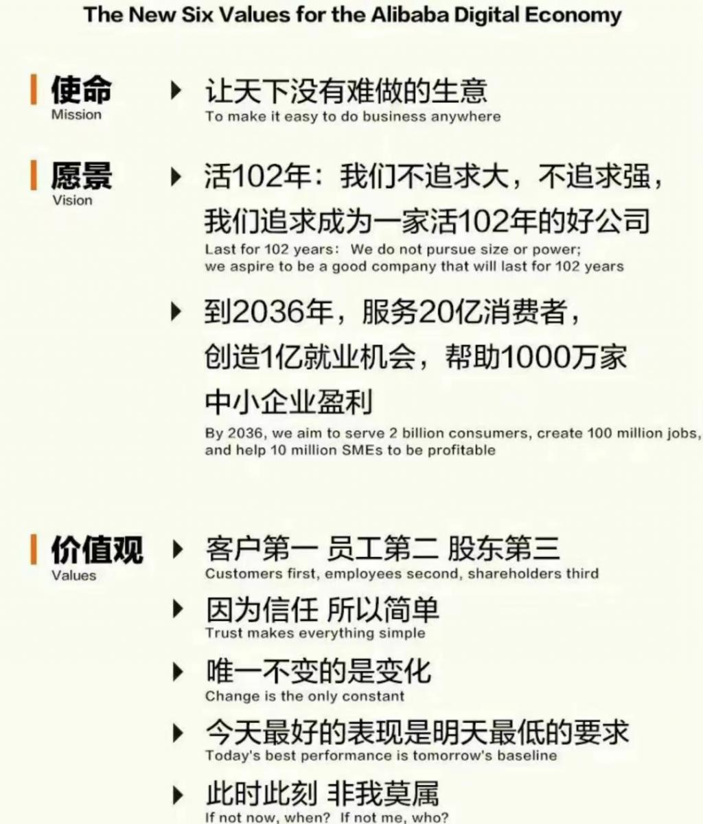 阿里反思的结论是平台没关注用户价值,但他们 " 新六脉神剑 " 还继续传承老的价值观 " 客户第一 "。只是知易行难。