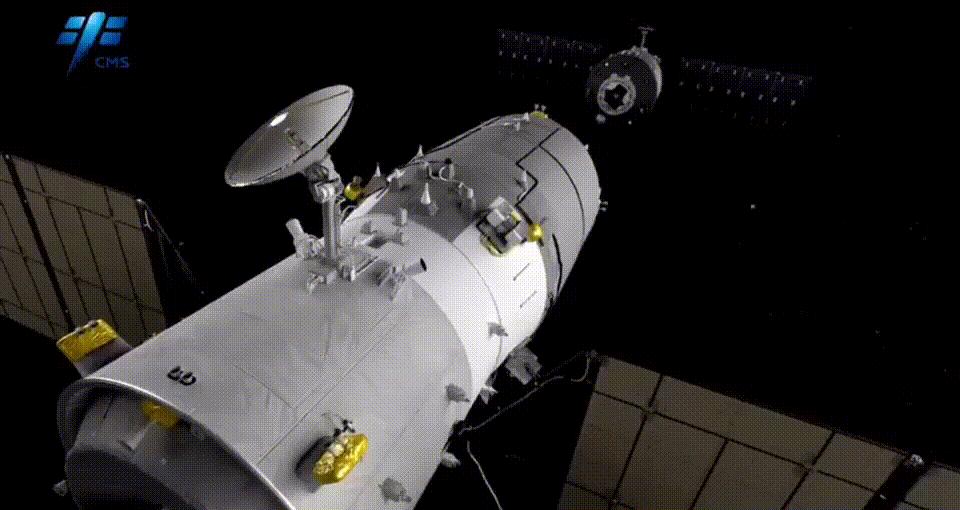 2017 年 4 月 22 日 12 时 23 分,天舟一号货运飞船与天宫二号空间实验室顺利完成自动交会对接。这是天宫二号自 2016 年 9 月 15 日发射入轨以来,首次与货运飞船进行的交会对接。随后,天舟一号与天宫二号进入组合体飞行阶段。