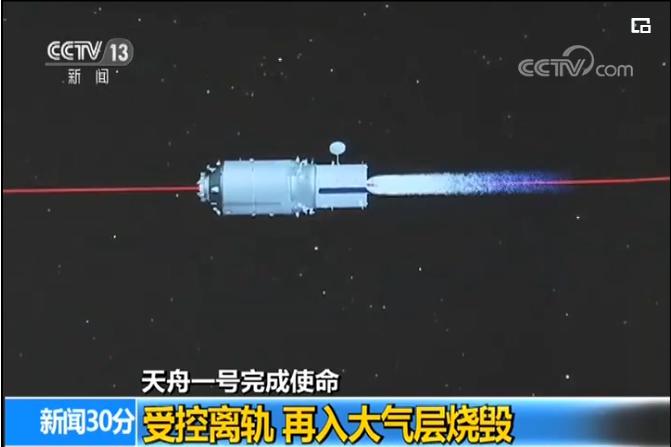 2017 年 9 月 22 日 18 时左右,天舟一号在完成空间实验室阶段任务及后续拓展试验后受控离轨再入大气层。