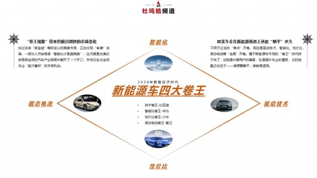 比亚迪 " 卷技术 ",华为 " 卷智能化 ",小米 " 卷性价比 ",智己 " 卷固态电池 " ……