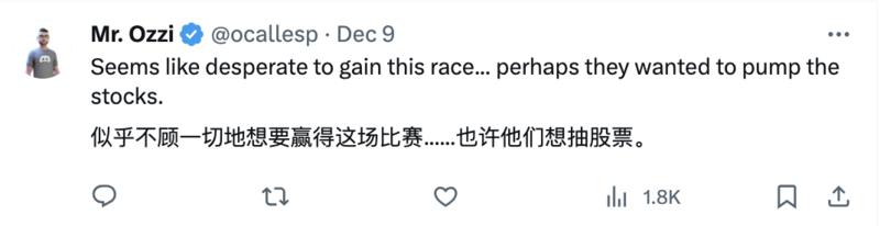 舆论的另一派认为,这并不能成为谷歌 " 不诚实 " 的证据,只是一个营销的问题(Marketing issue)。因为谷歌并不是一家需要集资、招募人才的初创公司,它有雄厚的资金来支撑 AI 模型的研发,所以没有必要在这次 AI 模型的亮相上 " 讲故事 "。