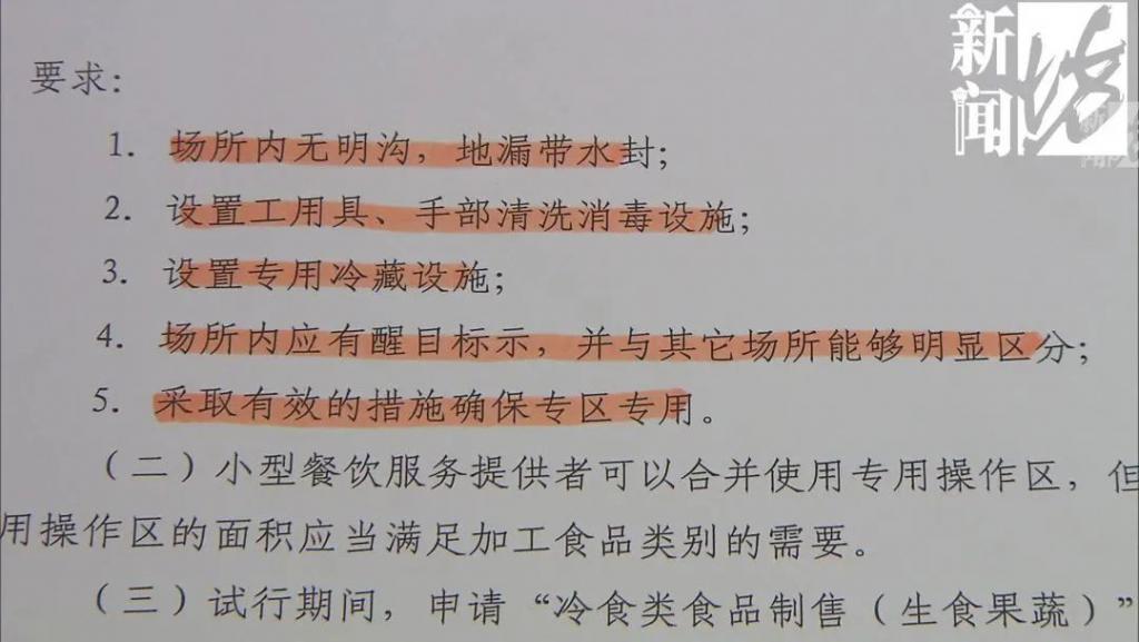 拍黄瓜,卖海带丝,炝花生这种植物性的,对许可进行了适当的简化。他只要有专用的区域,有明显的标识,区分于其它的加工场所,还有独立的消毒设施和冷藏设施就可以许可了。