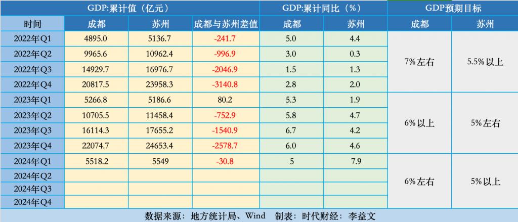 两项对比,苏州增速高出成都 2.9 个百分点。