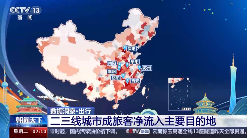 根据 12306 平台的火车票销售情况,我们看到属于旅客净流入的城市占到了城市总数的七成,这当中,苏州、保定、襄阳、吉安、南阳、岳阳、阜阳等二、三线城市成了旅客净流入的主要目的地。而北上广深、武汉、西安、成都等中心城市,则成旅客净流出量最多的城市。这意味着,大部分旅客选择从中心城市前往其他城市,来享受更为宁静和舒适的旅行体验。