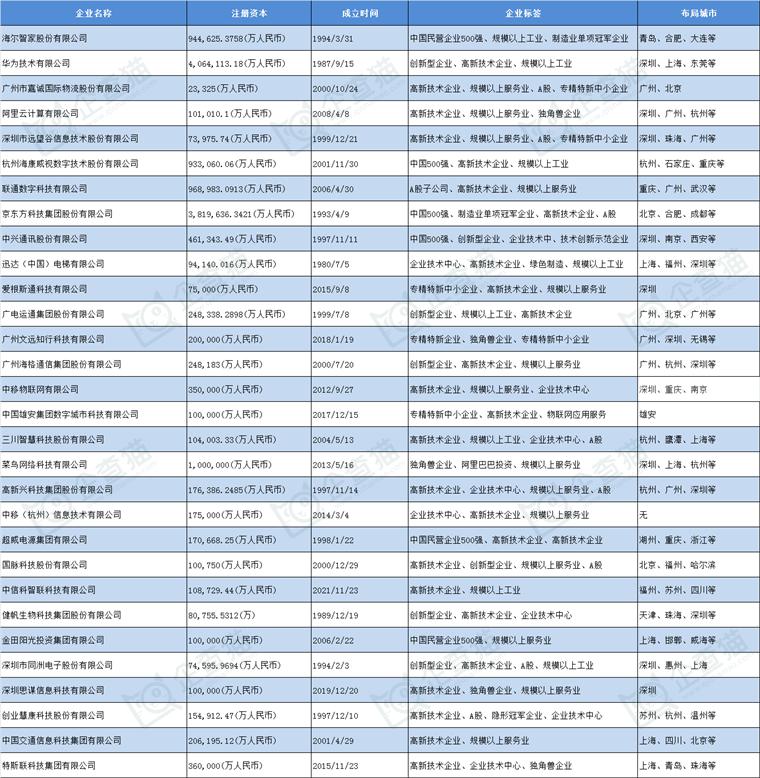 物联网产业招商清单:海尔智家、华为、嘉诚国际等最新投资动向