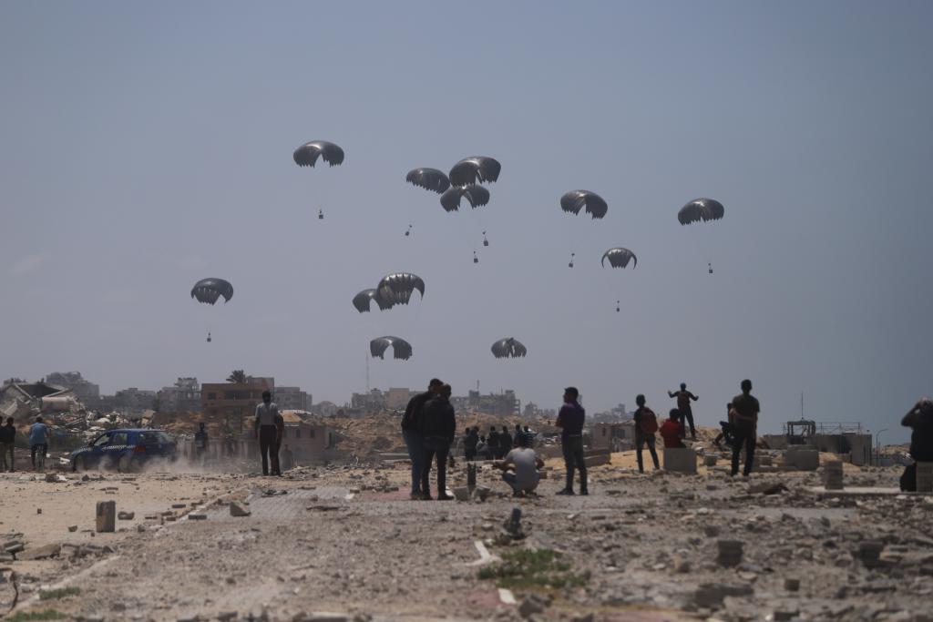 当地时间 4 月 30 日,一些国家派飞机向加沙地带空投人道主义援助物资。本轮巴以冲突持续至今,加沙地带食品严重缺乏,面临饥荒。