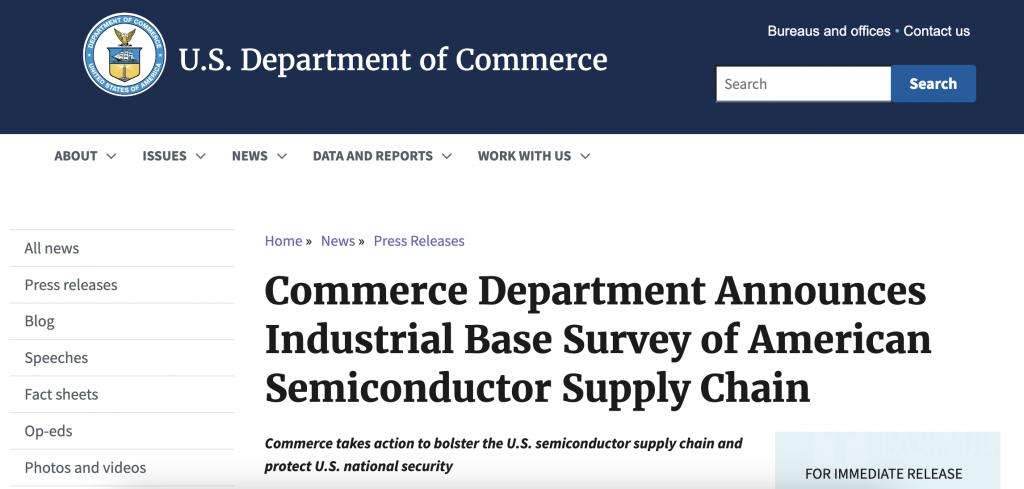 美国商务部计划对整个芯片半导体供应链进行审查。