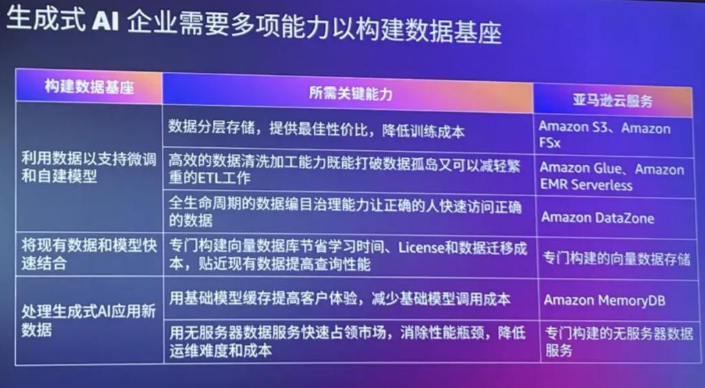正如亚马逊云科技大中华区产品部总经理陈晓建所言," 企业需要的是懂业务、懂用户的生成式 AI 应用,而打造这样的应用需要从数据做起。"