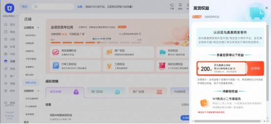 具体来看,针对淘宝新入驻商家,淘宝分别在新商成交破 0、破 5 千元、破 2 万元的重要成长节点,为商家提供发货补贴权益。对所有淘宝商家及天猫新入驻商家,平台同样提供一次性的发货补贴权益。