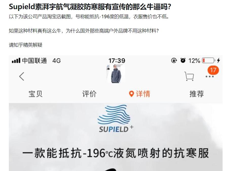 同样情况的,还有频繁登上小杨哥直播间的素湃防晒衣——作为一家成立于 2018 年 11 月的公司,素湃却轻松掌握了 " 核心科技 ",旗下防晒衣号称从纱线开始就自带 UPF 值(紫外线防护系数),更制造出了能够抵抗零下 196 度低温的宇航气凝胶防寒服。