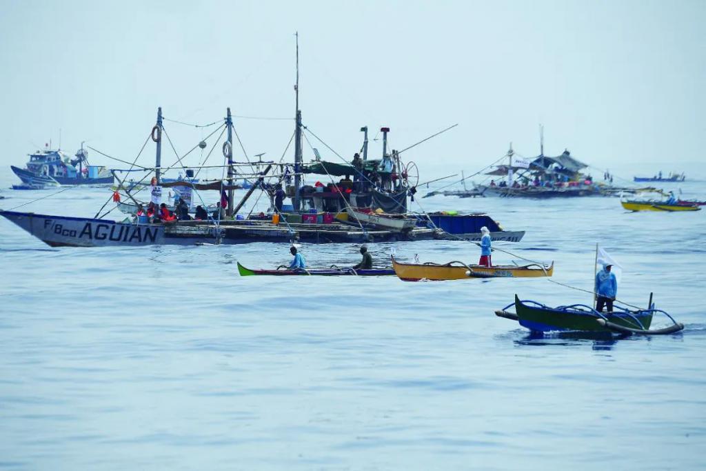 菲律宾组织的行动充满了表演气息。据法新社报道,15 日一早,约 200 人聚集在菲北部渔港马辛洛克镇,挥舞着小国旗,高呼口号,随后登上 5 艘商业渔船,一些小船跟随。几个小时后,一艘菲海岸警卫队船只在海上与该船队会合。