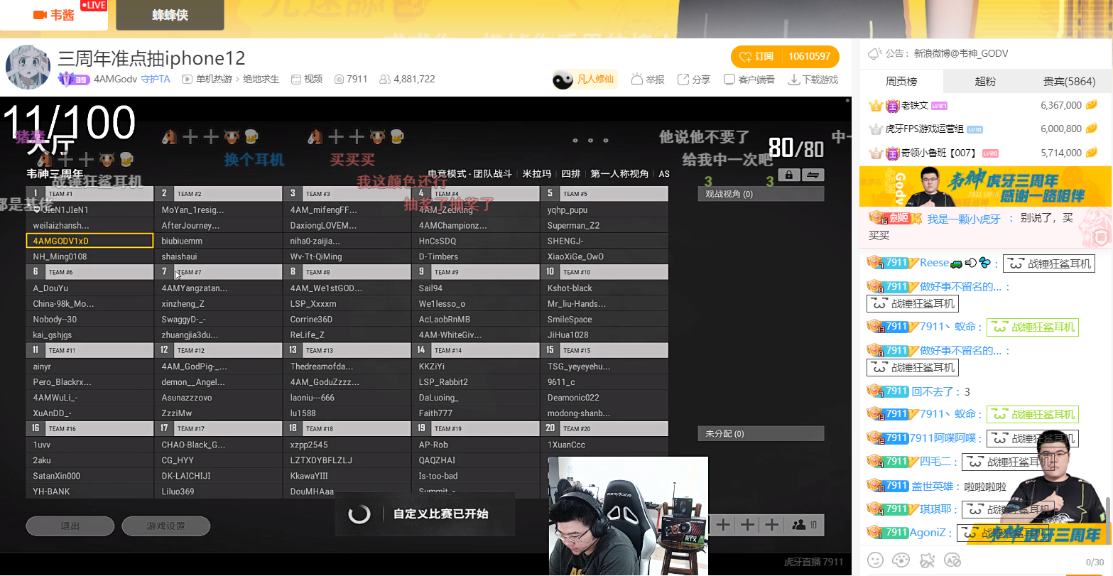 作为目前绝地求生人气最高的职业选手,韦神迎来了在虎牙直播的第三个年头,虽然说看过韦神直播的玩家都知道韦神为了训练基本不看弹幕,但7911的观众强就强在只要给他们一片天就能自顾自的嗨起来。在三周年之际,韦神也是开启了三周年庆典,在庆典中会送出大量的奖品来回馈7911的观众们。