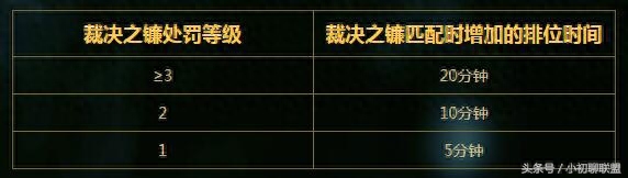 我们先看看:裁决之镰处罚等级和匹配时增加的排位时间的对应关系: