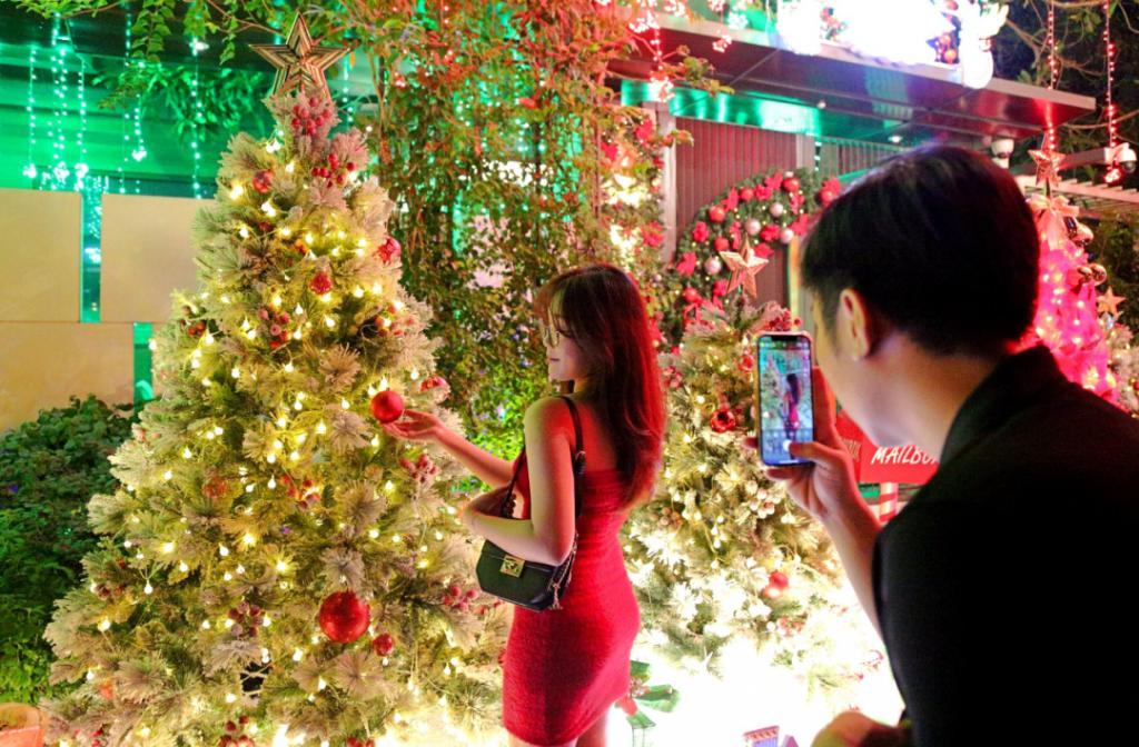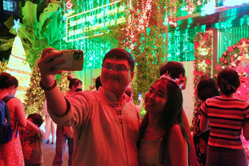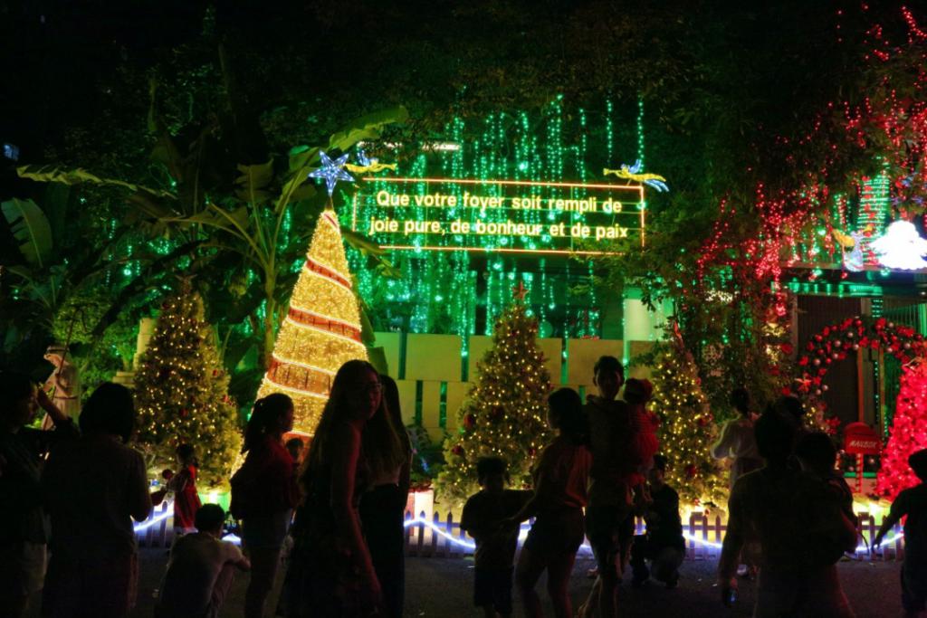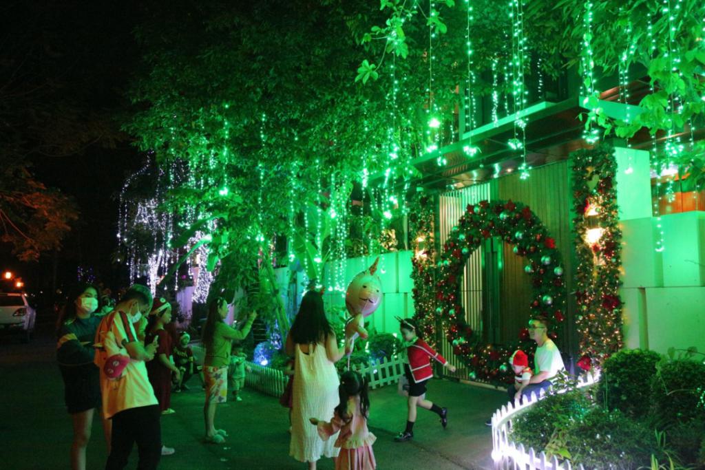 胡志明市 " 富人街 " 有很多价值数百万的豪宅,在圣诞节被装饰得闪闪发光,让许多人着迷,大家相约而至,争先恐后地拍照留念。