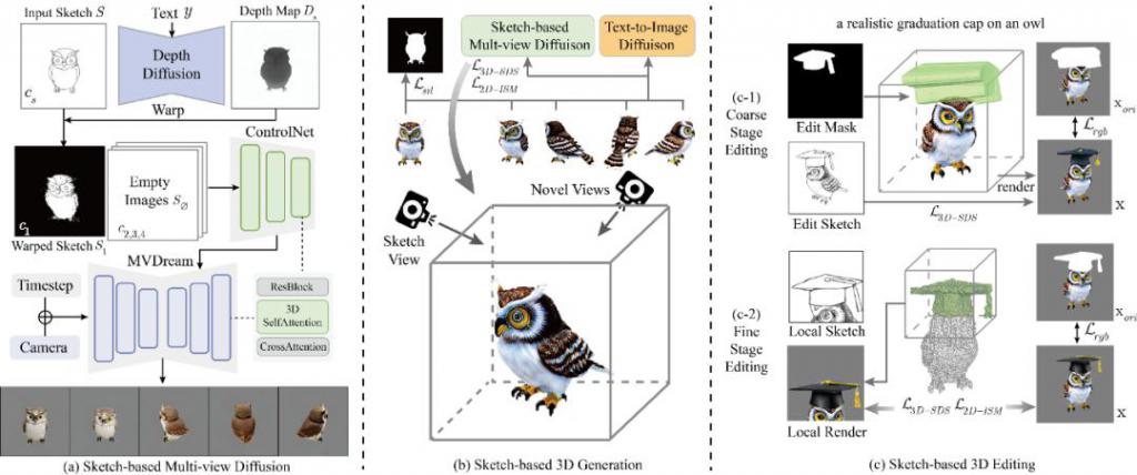 近期,一篇题为《SketchDream: Sketch-based Text-to-3D Generation and Editing》的论文提出了基于线稿和文本的三维内容生成和编辑方法 SketchDream [ 1 ] ,论文发表在 SIGGRAPH 2024,并被收录于图形学顶级期刊 ACM Transactions on Graphics。这个 3D AIGC 工作助你成为神笔马良,通过画笔画出三维世界,已入选 SIGGRAPH 精选亮点工作宣传片。