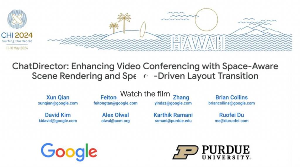 此前,谷歌展示的 Visual Captions 和开源的 ARChat,以促进实时视觉效果的口头交流为目标。在 CHI 2024 上展示的《ChatDirector: Enhancing Video Conferencing with Space-Aware Scene Rendering and Speech-Driven Layout Transition》中,谷歌介绍了一种新原型,通过在空间感知共享会议环境中为所有参与者提供语音驱动的视觉辅助,增强了传统的基于 2D 屏幕的视频会议体验。