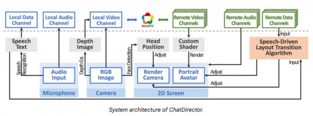 ChatDirector 是一个研究原型,它将传统的视频会议转变为使用 3D 视频头像、共享 3D 场景和自动布局转换。