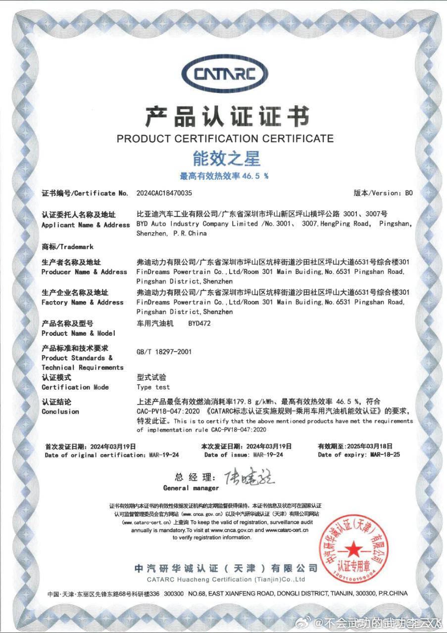 比亚迪品牌及公关处总经理李云飞看到该消息后,立刻发文称比的是量产,如果只是看热效率更高的,那么比亚迪实验室还有热效率达到了 46.5% 的发动机。