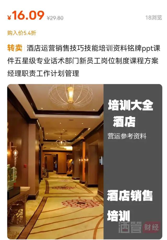 二手平台除了能代订酒店,还能倒卖酒店周边产品,甚至还能买到酒店集团的内部培训课程。