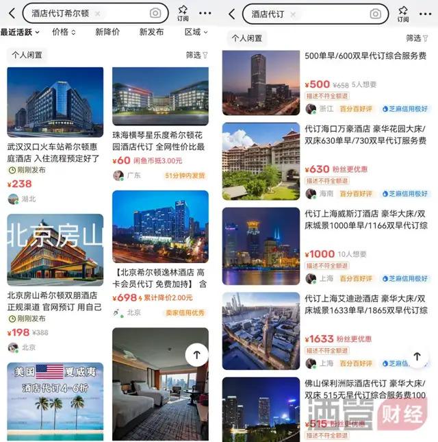 在闲鱼上搜索 " 希尔顿代订 ",能搜索到很多商家。