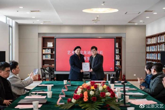 艺术学院龙迪勇院长致辞,并为顾问刘洪友先生颁发聘书。谈及新版研究生教育学科目录中书法由原来附属于美术,到书法与美术的并列,龙迪勇院长认为书法未来有更大的广阔空间,必将大有可为,为社会主义事业做出更大贡献。