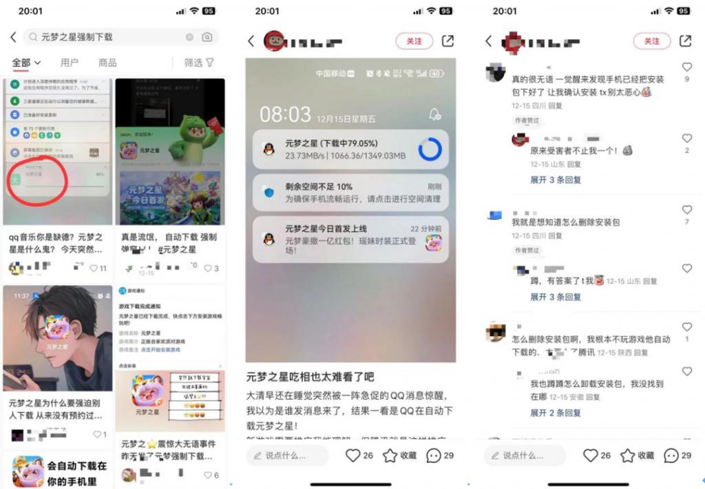 大量的玩家在社交平台反馈,腾讯的《元梦之星》在玩家没有预约、没有收到告知的情况下,默认开启了下载。