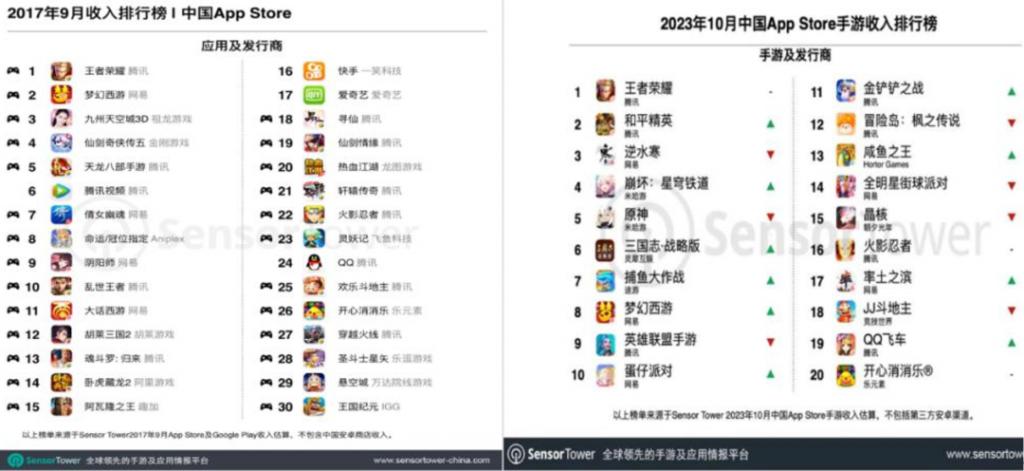 而产品上,腾讯的自《王者荣耀》《和平精英》之后,再无现象级手游。从收入排行榜上也可以看出来,除了第一二的《王者荣耀》和《和平精英》,榜单上的后几面被各家瓜分,游戏新势力崛起,已经对腾讯形成为了 " 包围之势 "。
