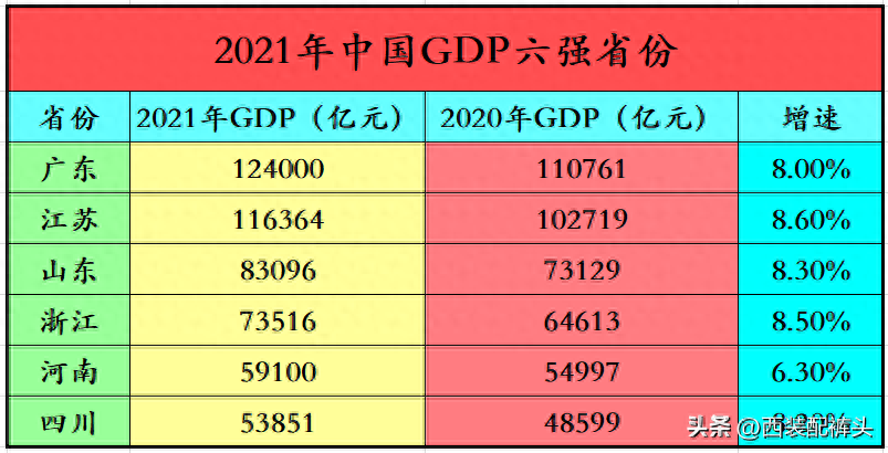 2021年中国GDP六强