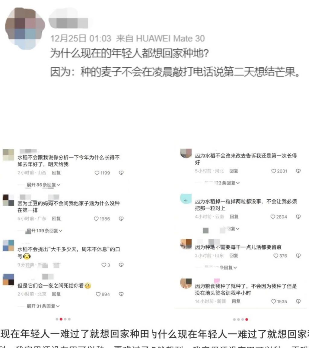 这种来自于土地的纯朴力量感和鲜活生命力,以及被保护被照顾的诱惑,吸引着每一位被生活折磨得奄奄一息," 又活过一天已经很好了 " 的年轻人,卷生卷死非吾愿,在雨姐身边当个 " 啥也不会干但嘎嘎会捧哏的小废物 " 才是人生追求。