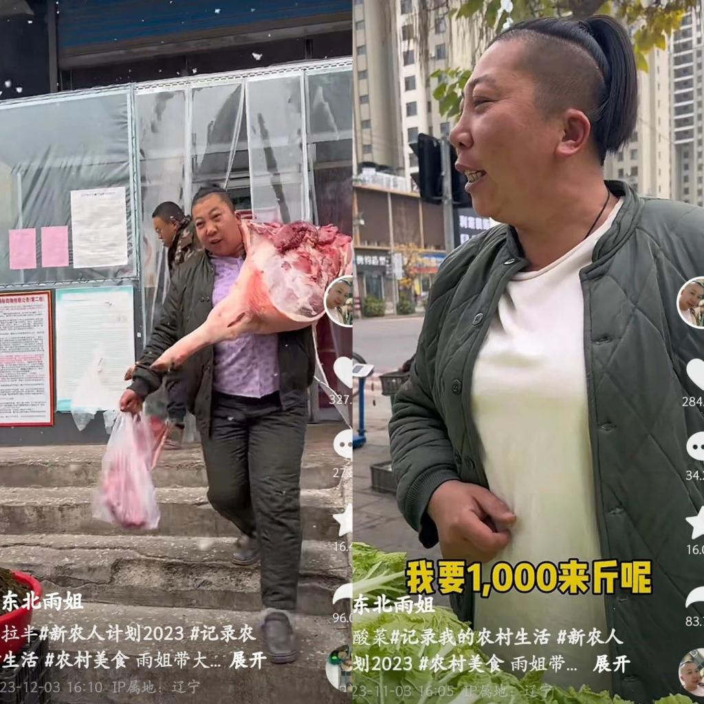 东北雨姐,被誉为 " 战狼版李子柒 ",是能肩扛半扇猪不带喘地回家,再呼哧呼哧做好一顿杀猪菜的英勇战士。