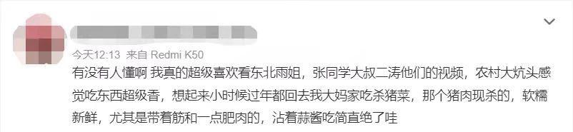 但单看东北农村美食赛道,雨姐似乎平平无奇,东北农村的日常、家家户户都能做的美食,就算是走怀旧路线也难以解释如此庞大的粉丝量。