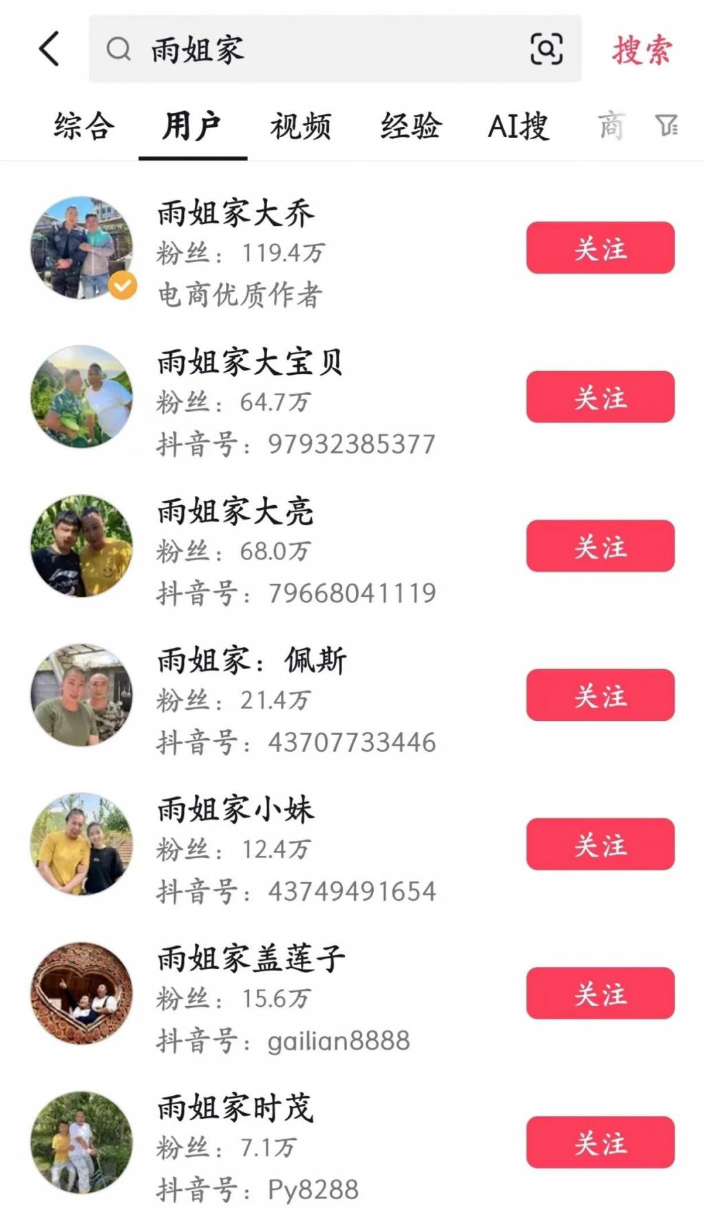 雨姐家大乔、雨姐家大宝贝、雨姐家佩斯、雨姐家盖莲子……这些因各种原因投奔雨姐的自媒体人,在雨姐的视频中担任了各种角色。
