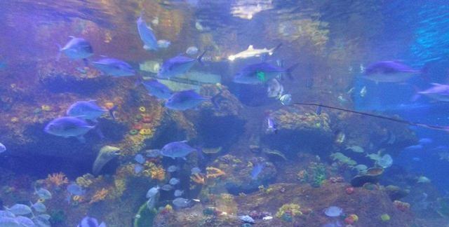 “我想和你,一起闯进森林潜入海底,想带你去探索海底的秘密”提起海洋馆便不自觉的想起了这句歌词,一进馆种类繁多的鱼类扑面而来,眼花缭乱,好像置身在美丽的海洋世界中一样,各种各样的鱼游来游去像在和你做迷藏,一会躲在石头缝,一会又突然地出现,还有梦幻水母馆,各式各样的水母,神秘又美丽,一伸一缩像是飘舞的精灵,