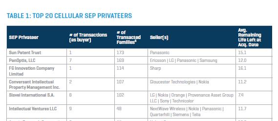 如果进一步研究这个案件还可以发现,Sun Patent Trust 的诉讼目的并不是仅以商业获利为目标的普通 " 专利私掠 " 行为,其背后还有着更深的产业诉求。《Stout 报告》列出的全球 TOP 20 私掠者榜单显示,入榜的专利私掠者大多拥有多个专利收购对象,最高者有 9 个之多;可交易最多的 Sun Patent Trust 却仅有一个专利卖方——日本松下公司。这就让大多数人好奇于 Sun Patent Trust 与松下之间究竟是何关系了?
