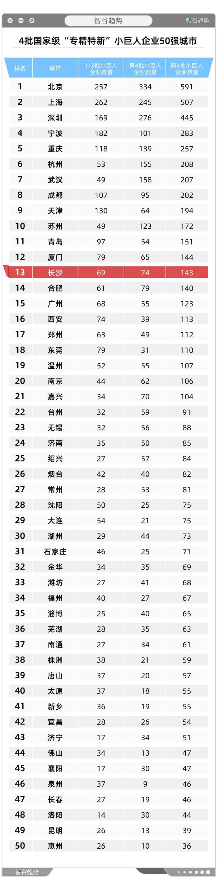除了三一集团和铁建重工这样的“智造龙头”外,长沙还有143家国家认证的“专精特新”小巨人企业,在全国所有省会城市中排第3。
