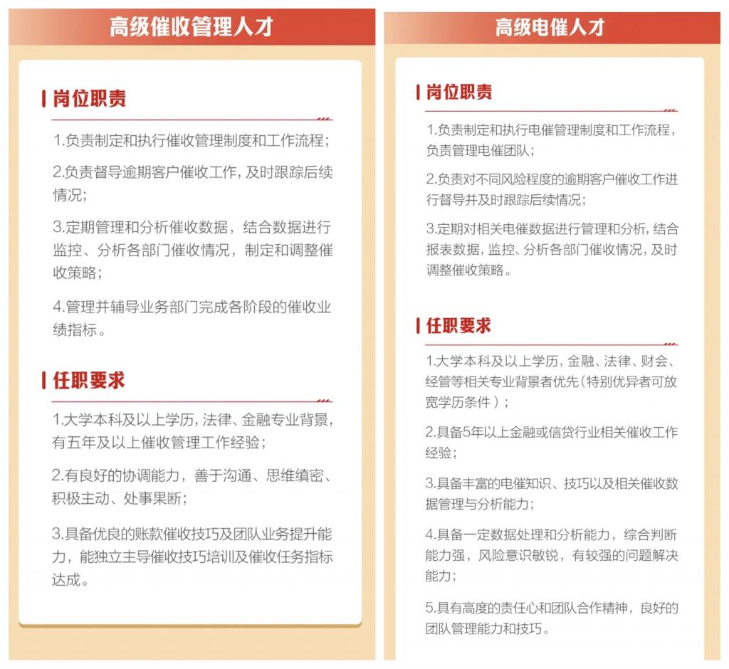 亲自下场追债先来看看各家银行招聘催收人才的 " 高标准 " 要求。
