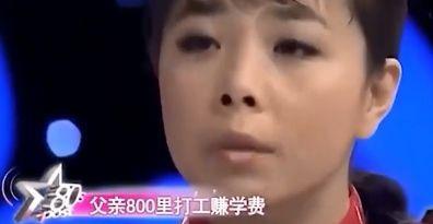 比赛当天,王二妮穿着母亲缝制的花裙子,编着麻花辫上了台,