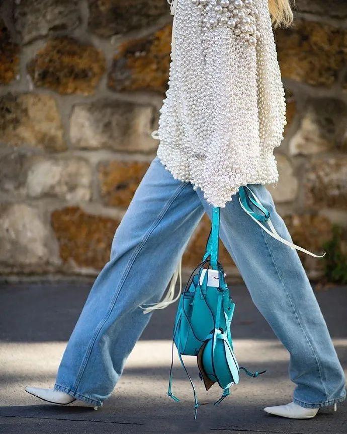 淡蓝色牛仔裤,