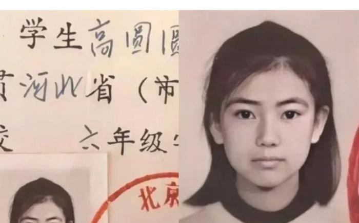 高圆圆的长相从小就很优越,小时候爱玩,皮肤晒得黝黑,但也能看出长得十分标致。
