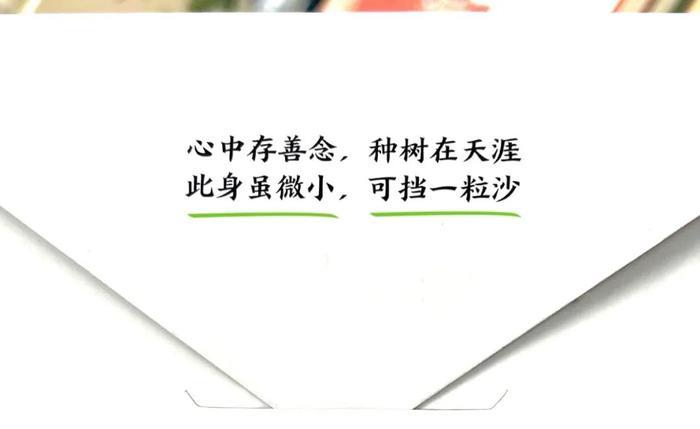 蚂蚁森林送给热心用户的明信片上印着这样一句话:“心中存善念,种树在天涯。此身虽微小,可挡一粒沙。”社会各方各司其职,各方努力加上由无数个体汇集成的力量,正在共同推动生态向好,践行着绿色环保。