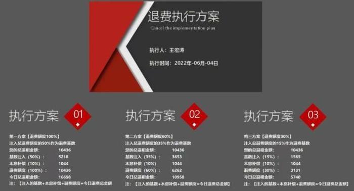 “客服”提出的三种退款方案。