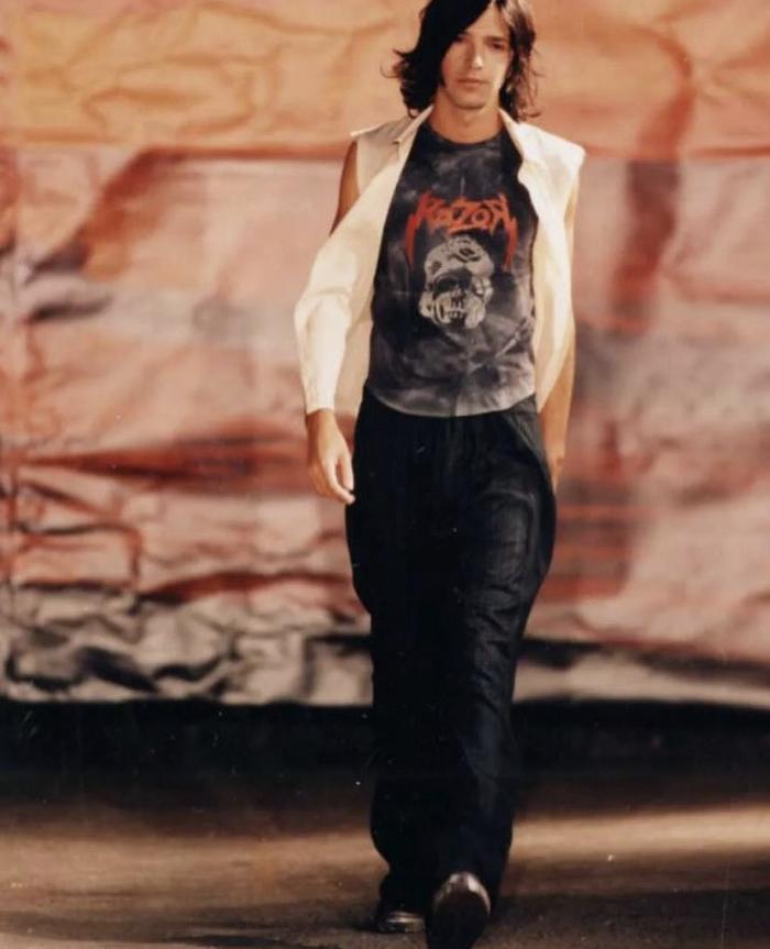 “一件好的衣服应该是社会的记录”,Raf Simons无愧于自己说过的这句名言,甚至某种层面上而言,Raf奉献给世界的不仅仅是衣服、作品与秀场,1998年Black Palms春夏系列呈现了朋克、摇滚与迷幻混杂在一起的颓废感,瘦弱的青年们在肩胛骨上绘制黑色棕榈树,迷茫悲伤地生活,这组合出来的“街头”才是最原汁原味的,而非用限量的高街单品叠加、千篇一律的拍照姿势里流露。