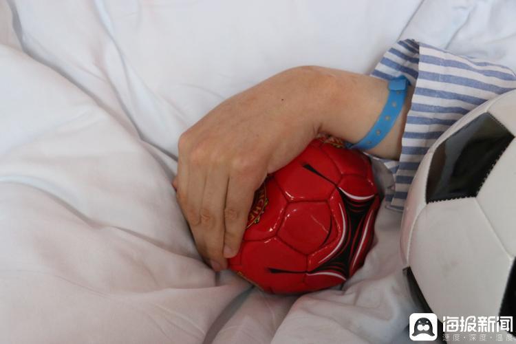 张昌硕的病床上摆放着两个足球