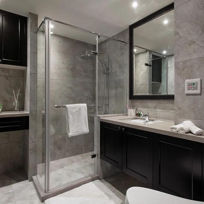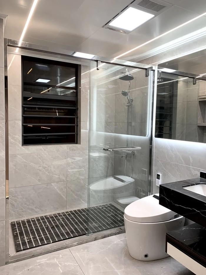 这样能更好的确保淋浴亭内的水,不会通过挡水条渗到干区,或是卫生间的潮气通过门槛石延伸到卧室,导致地板受潮。