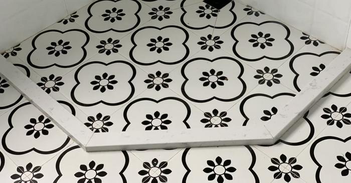 3、平铺地面装挡条地砖铺好后,然后再挑选合适的位置安装挡水条。