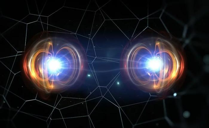 量子纠缠是指当一对粒子被创造出来之后,一旦确立了其中一个粒子的属性,另外一个粒子的属性也就会自动显现出来。